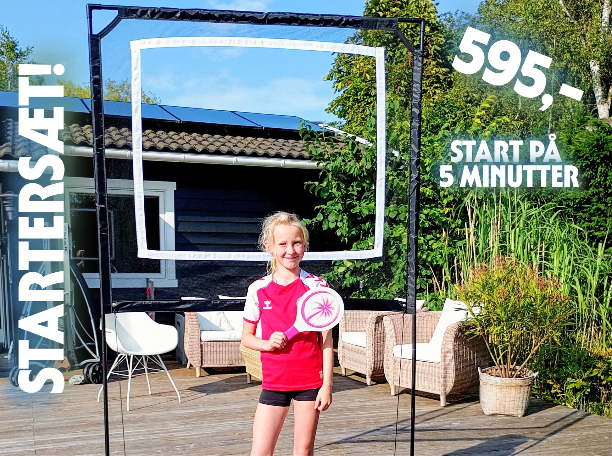 Spillesættet kan samles utrolig nemt på få minutter, og der medfølger dansk samlevejledning med billeder, så du nemt og hurtigt kan begynde at spille. Husk at sikre det med de medfølgende pløkker i blæsevejr.